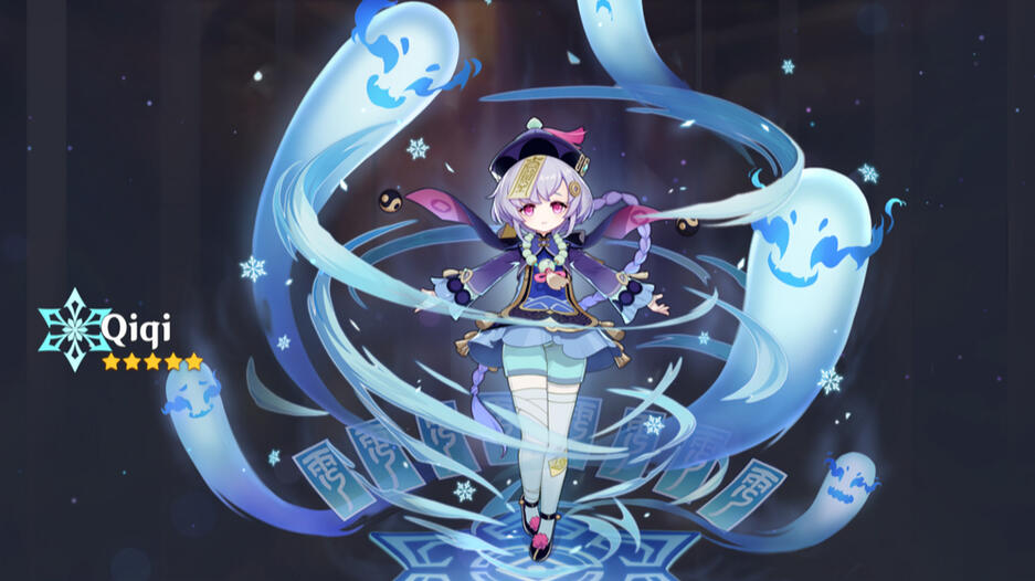 On hit, Qiqi's Normal and Charged Attacks regenerate HP for your own party members and nearby teammates. Healing scales based on Qiqi's ATK.Periodically regenerates your active character's HP.Follows the character around, dealing Cryo DMG to opponents in their path.